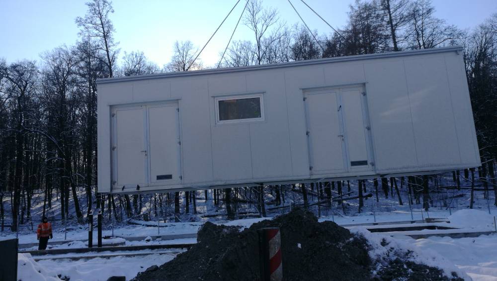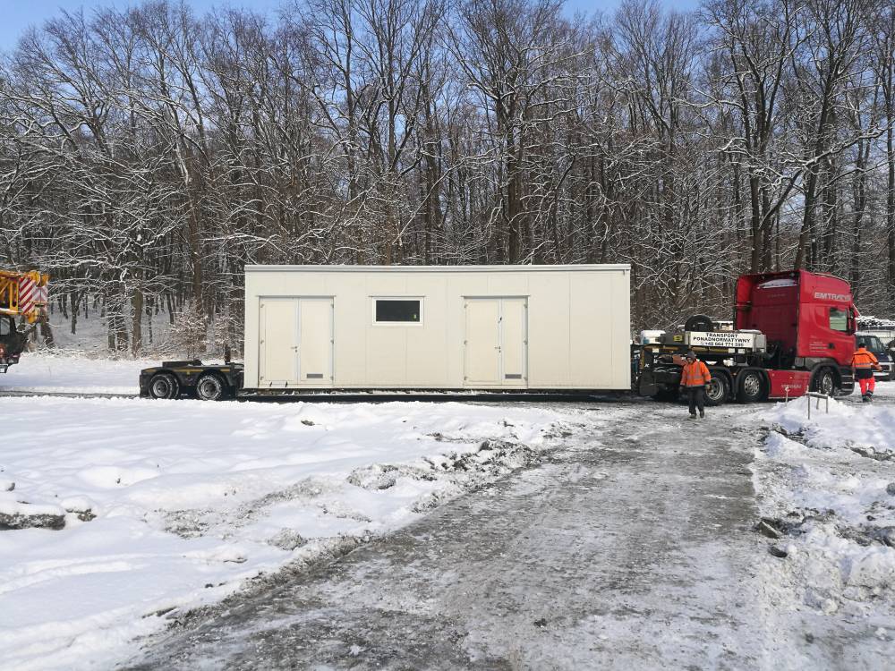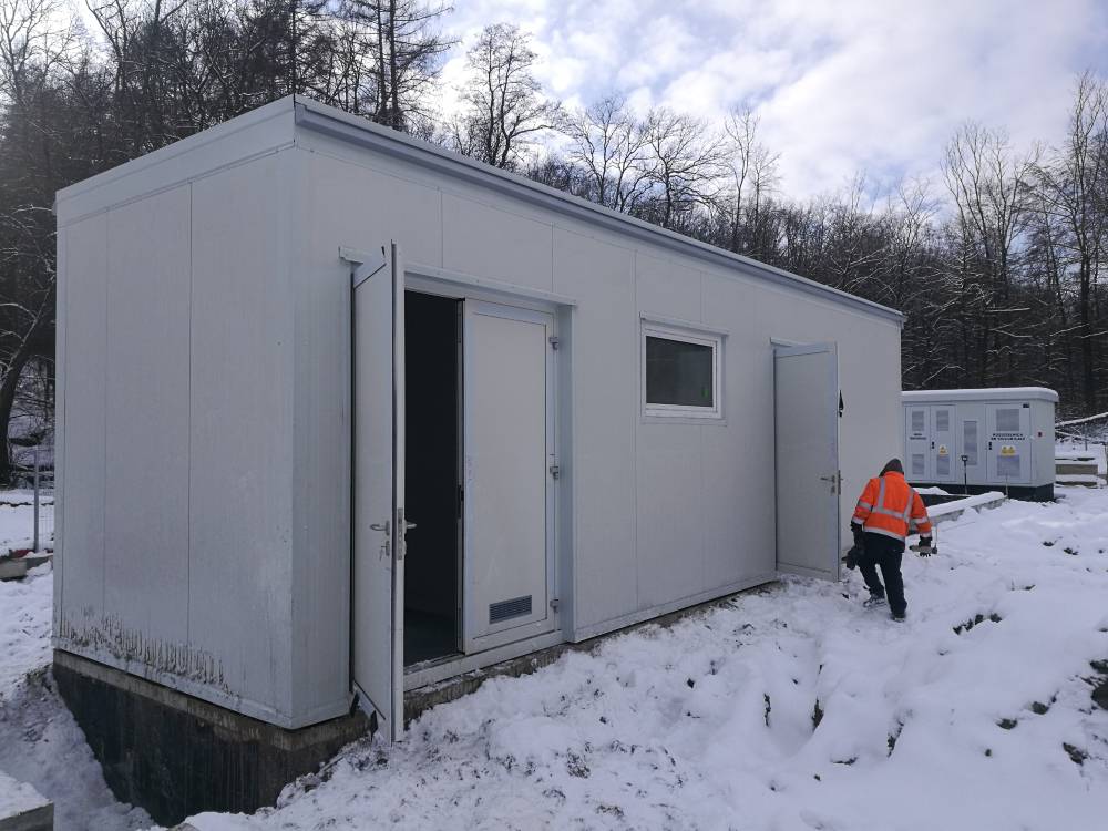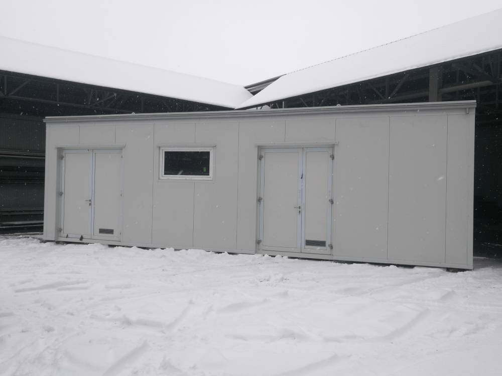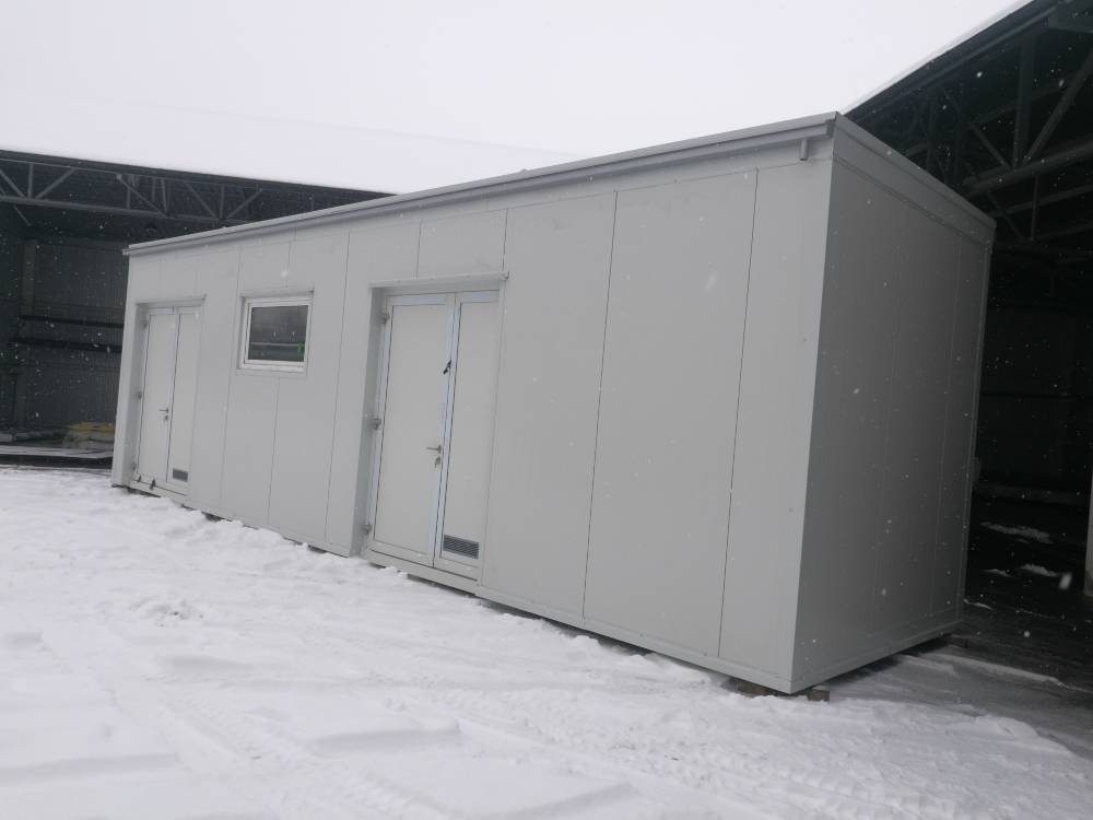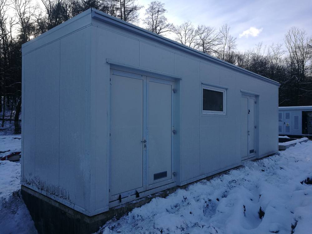 | Zakres | Projekt wykonawczy, wykonanie samonośnej konstrukcji stalowej wraz z obudową ścian i dachu płytami warstwowymi. Montaż drzwi aluminiowych, montaż okna PCV, Transport wielkogabarytowy, posadowienie na przygotowanym fundamencie. Gabaryty: 10,65 x 3 m, h = 3,40 m |